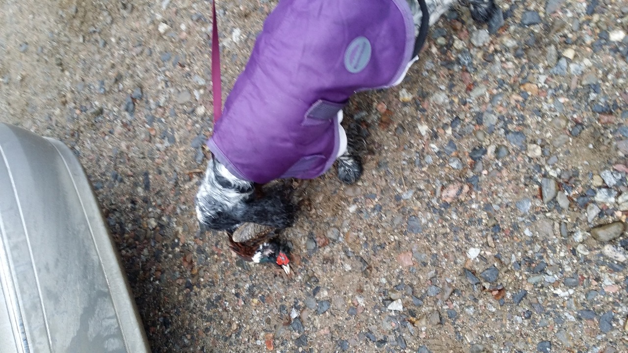Patulle ja Lucalle heitettiin fasaania pihalla. Kuitenkin ikävä oli niin kova ollut, ettei maltti linnussa kausn kestänyt.